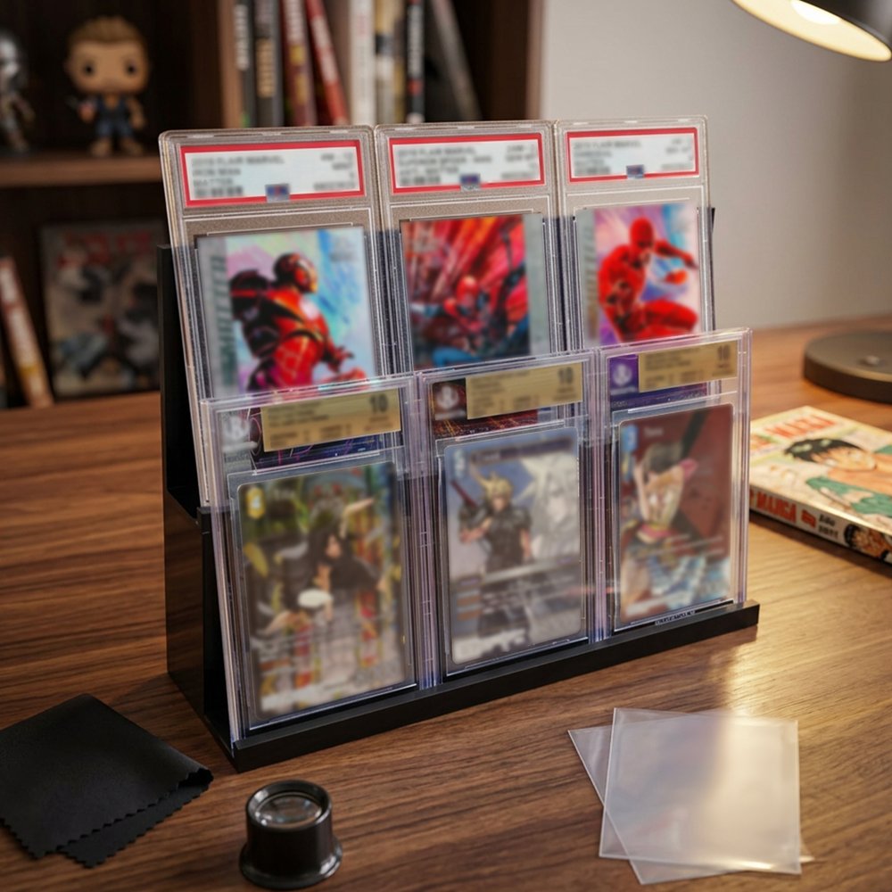 Elevate your trading card display with our Graded Trading Card Display Tower, allowing you to showcase your prized cards elegantly.
