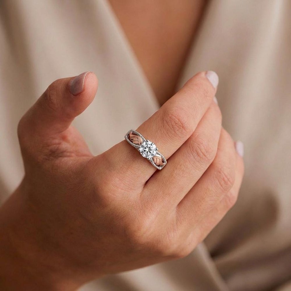 Expertly crafted with a polished silver-tone band and exquisite rose gold-tone angel wings, this ring boasts a stunning dual-tone finish that elevates its elegance. The center stone is securely setting to maximize sparkle, while the smooth edges ensure a comfortable fit for all-day wear. The durable construction ensures this timeless piece will be treasured for years to come.