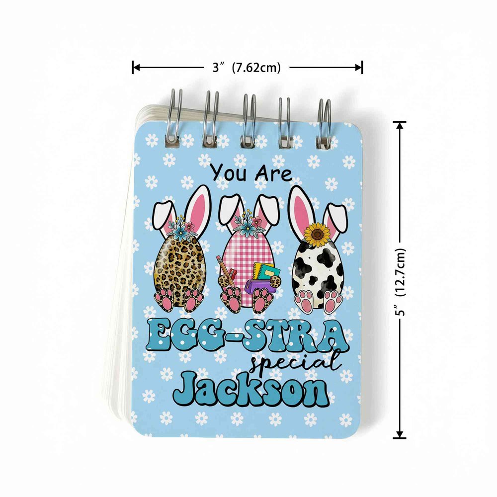 This charming Personalized Bunny Easter Egg Notebook features a whimsical design packed with festive fun! Adorned with cute patchwork-style bunny ears, colorful Easter egg motifs, and the punny phrase “You Are Egg-Stra Special,” it brings a joyful pop of color to every note-taking moment, perfectly capturing the spirit of Easter for kids.