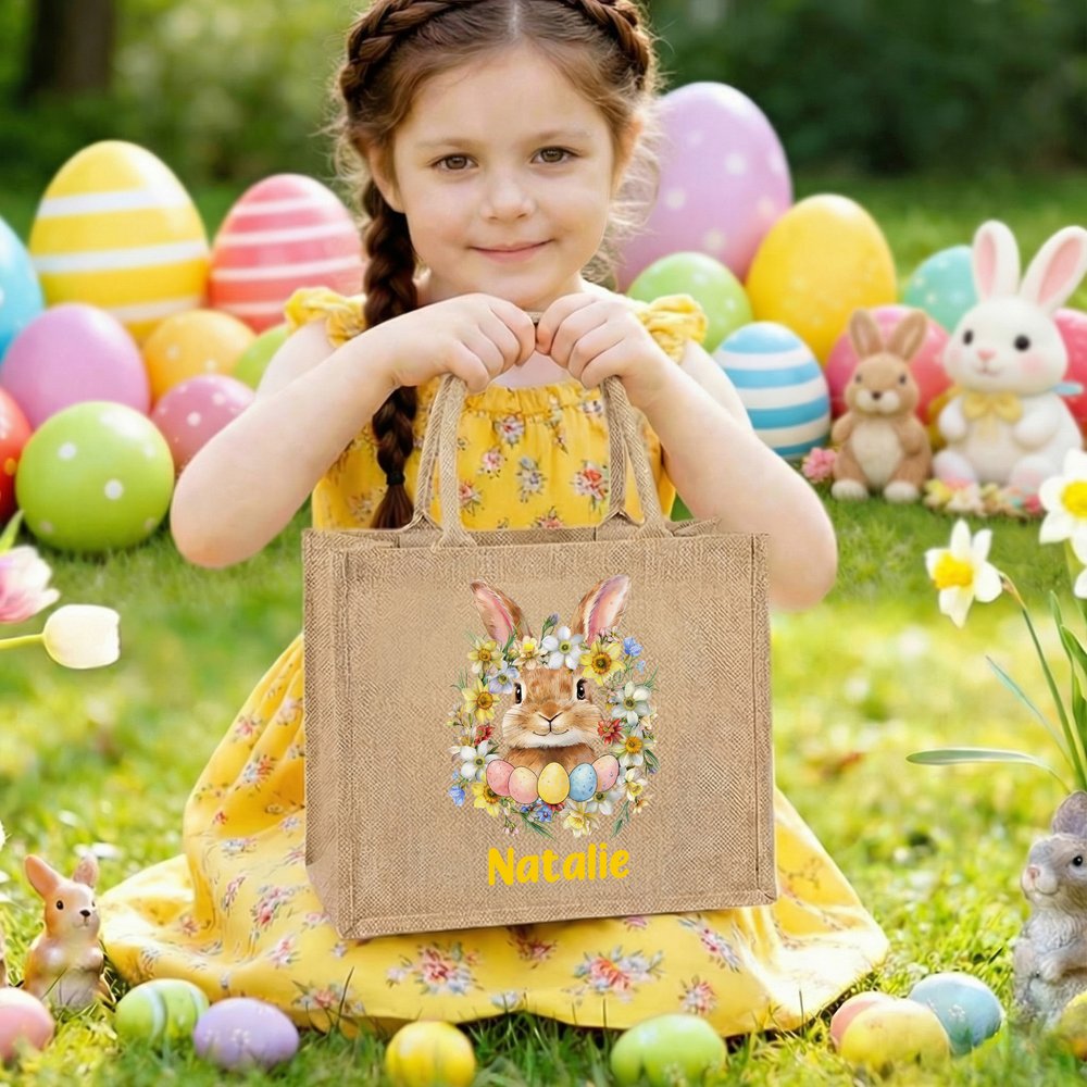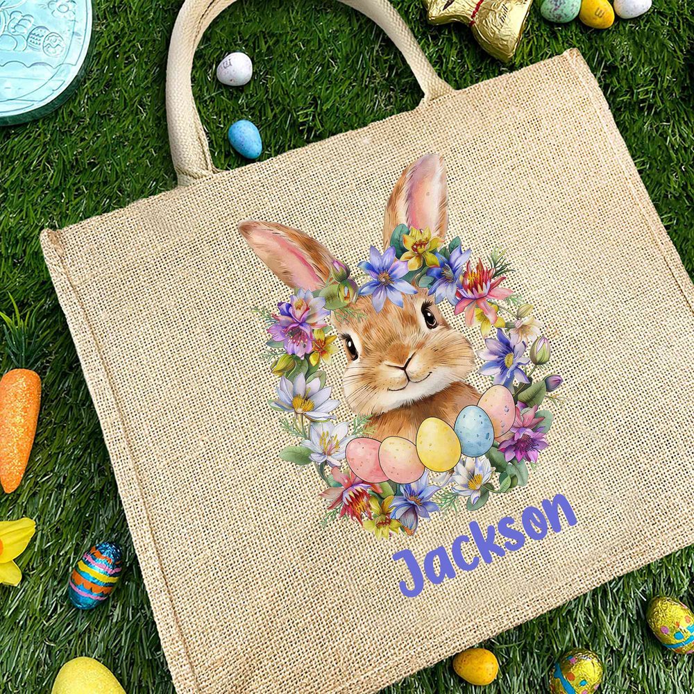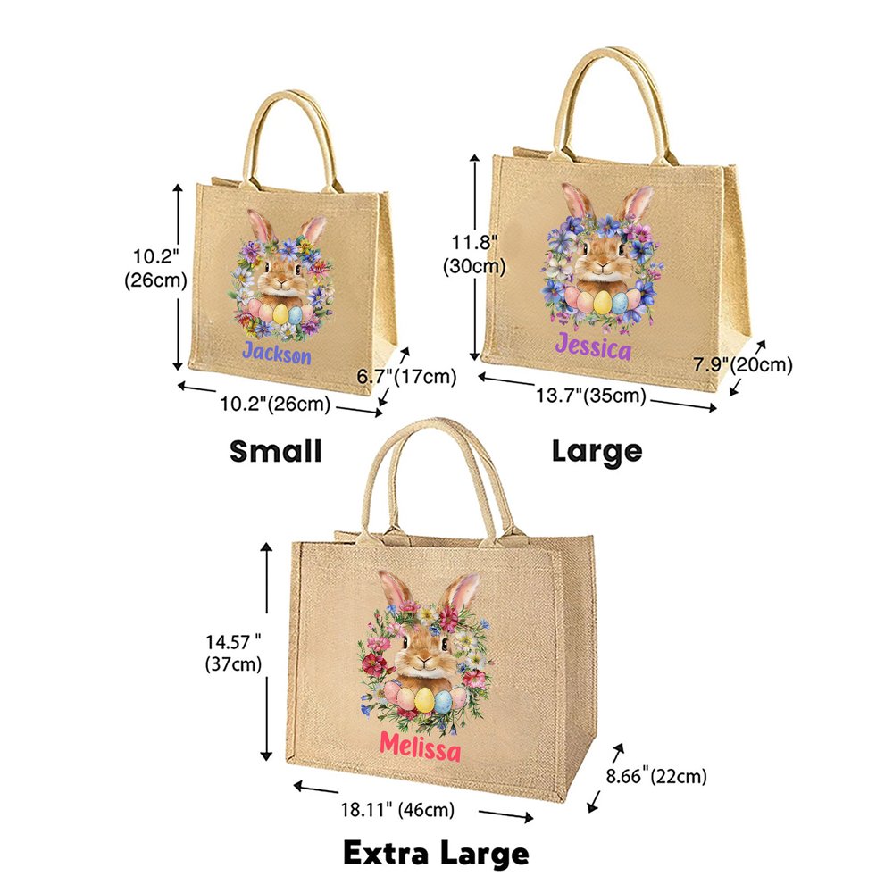 Personalized Cute Easter Bunny Birth Flower Large Capacity Jute Bag with Name Daily Use Easter Gift for Friends Kids