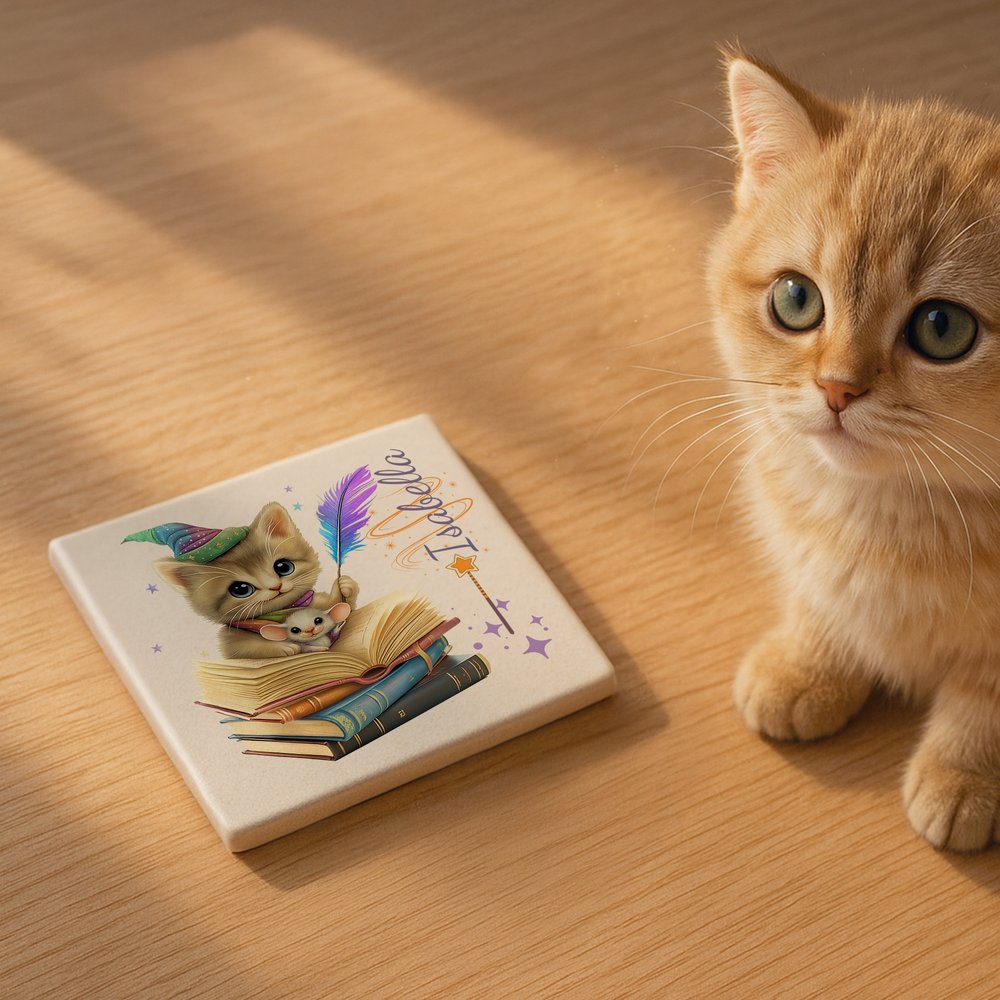 Personalized Cute Magic Cat 11 oz 15 oz Ceramic Mug with Name and Coaster Birthday Anniversary Gift for Cat Lovers Bookworms