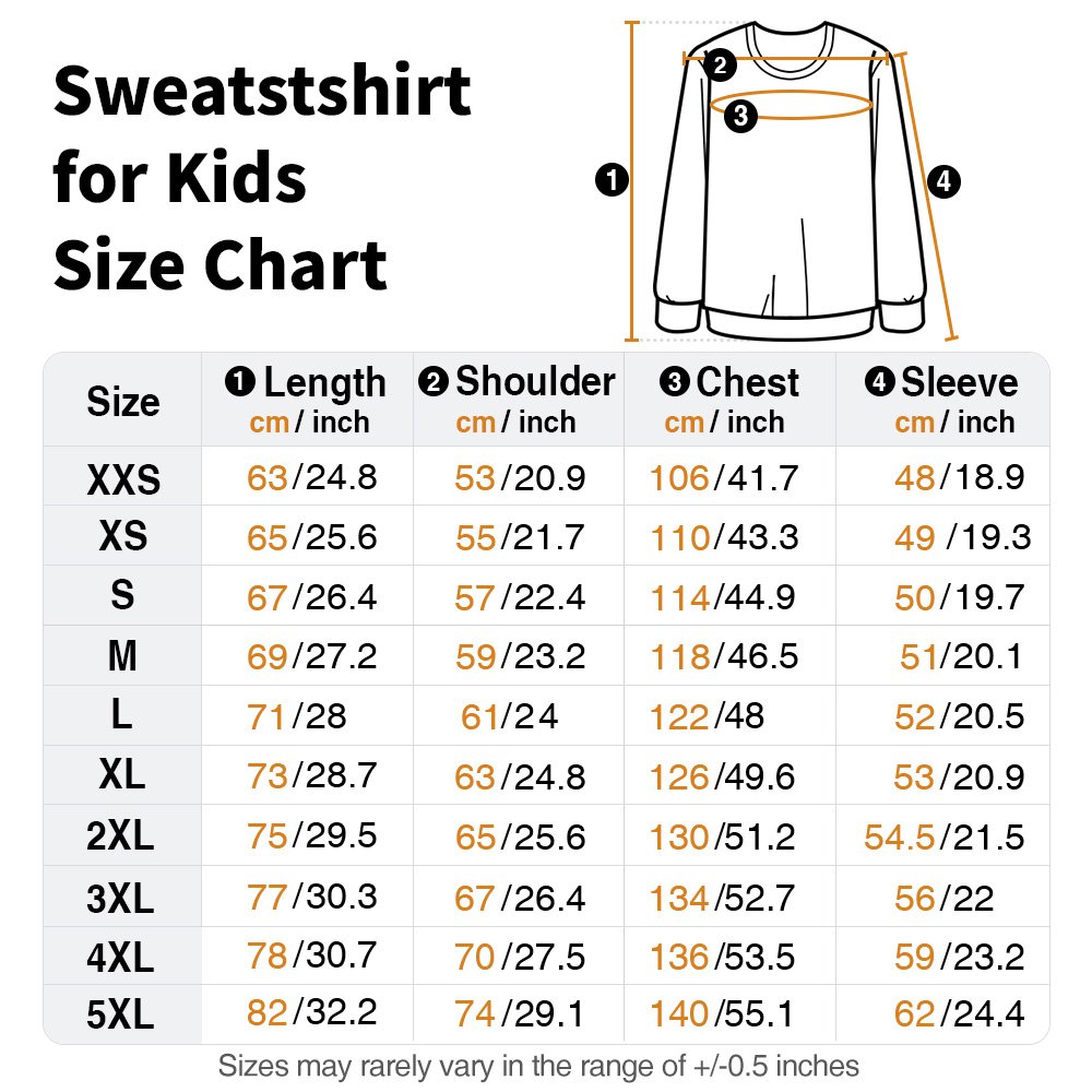 | Measurement: | Adult Sweatshirt Size: XXS, XS, S, M, L, XL, XXL, XXXL Kid Sweatshirt Size: M, L, XL, 2XL,3XL,4XL |