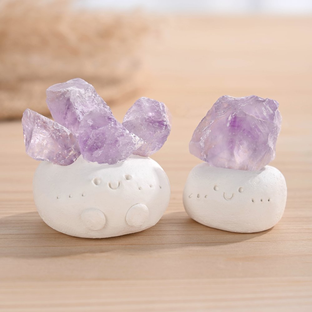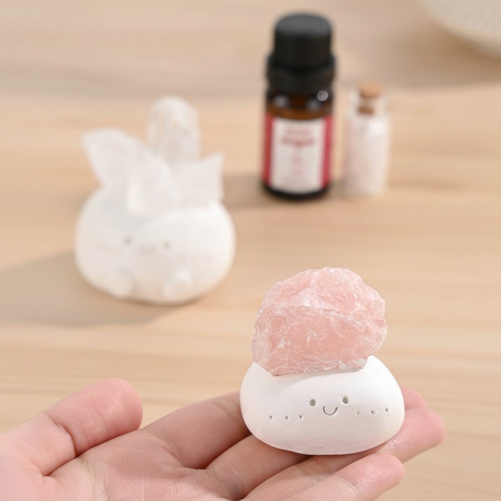 This aromatherapy diffuser cleverly combines a cute, little potato-shaped base with a crystal stone, creating a visually appealing and spiritual touch. Each crystal corresponds to different physical and mental needs. Citrine brings wealth and fortune, transparent quartz enhances concentration, rose quartz improves interpersonal relationships, green fluorite can enhance the person's magnetic field, and amethyst can relieve anxiety. Text can also be customized on the ornaments to make it more personalized and meaningful.