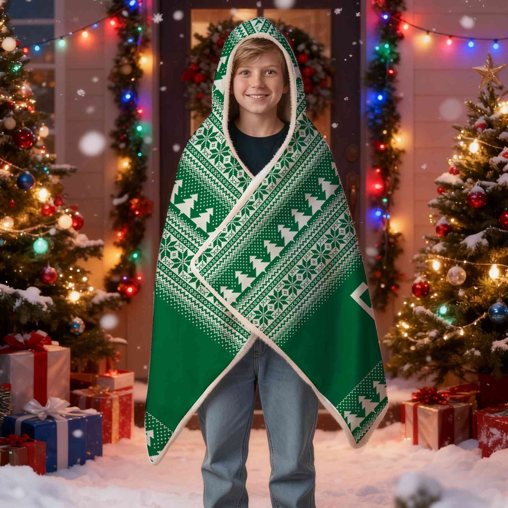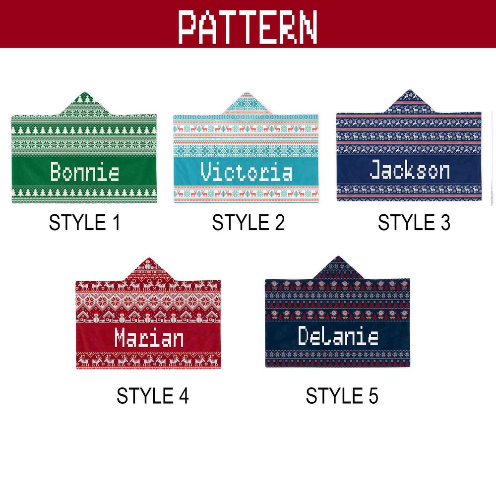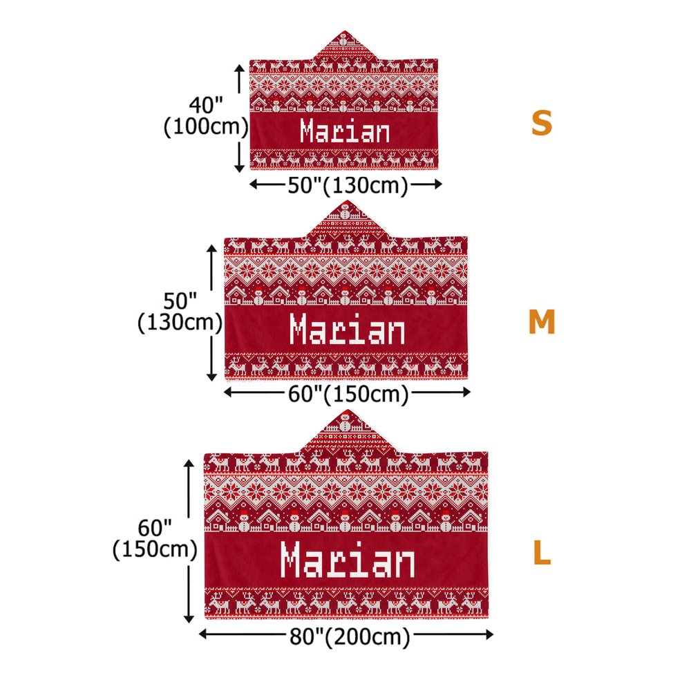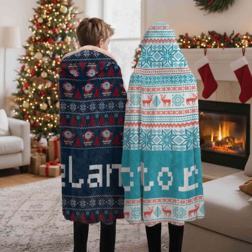 This hooded blanket brings Christmas charm to life with 5 distinct Fair Isle-inspired designs, featuring classic motifs like snowmen, reindeer, and Santa Claus. Add a custom name for a personal touch, and choose from three sizes to create a one-of-a-kind holiday keepsake. It’s more than just cozy—it’s a festive style statement all your own.