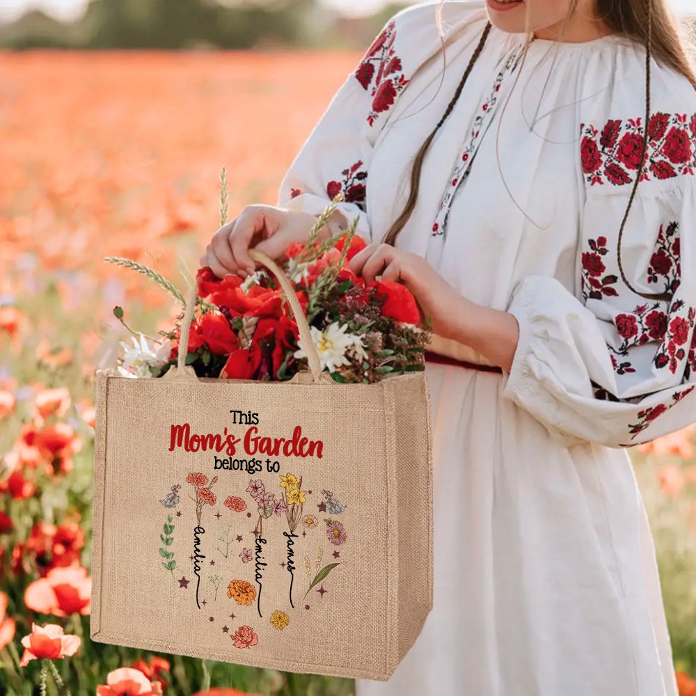 This tote bag features a large heart composed of various birth flowers, each of which is lifelike and full of warmth. You can also customize 1-12 names and birth flowers to symbolize each family member, adding a personal touch to this tote bag. We also provide 4 styles, you can choose according to your daily habits.