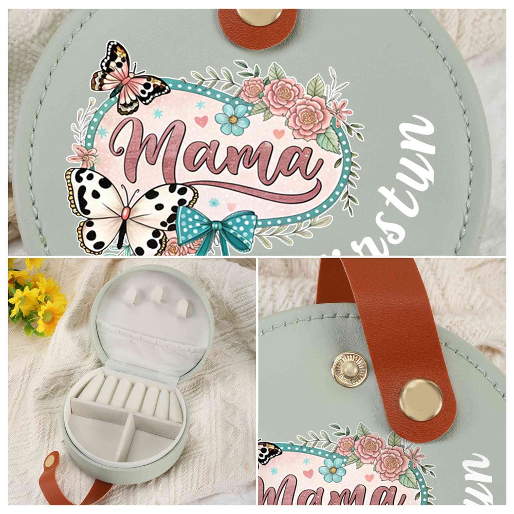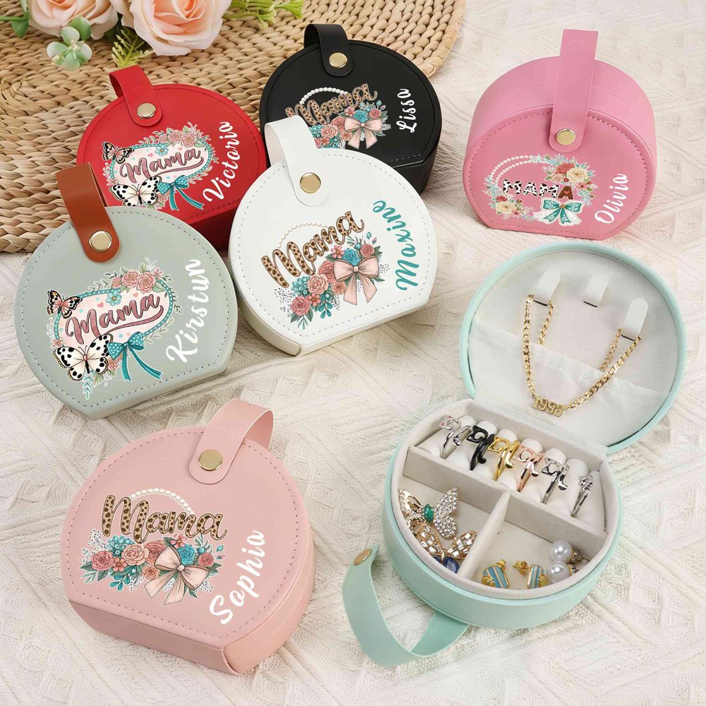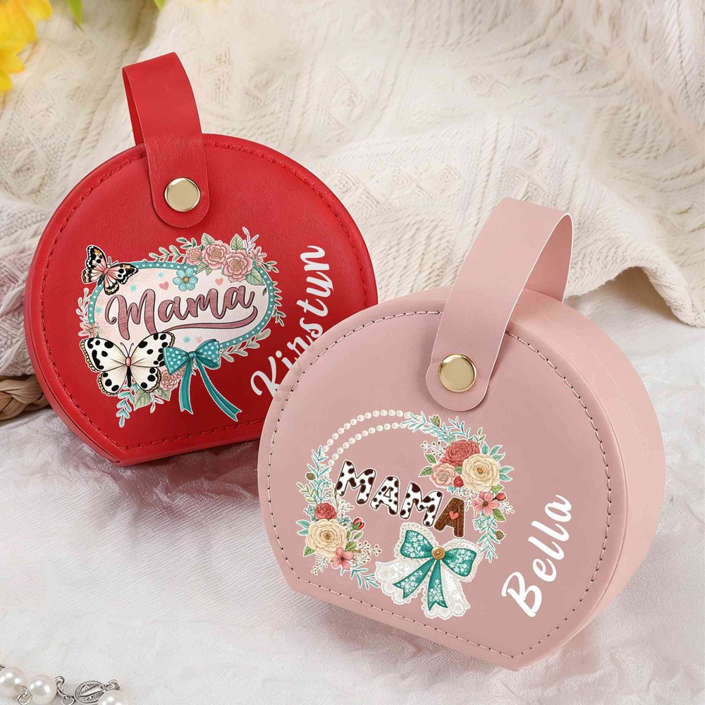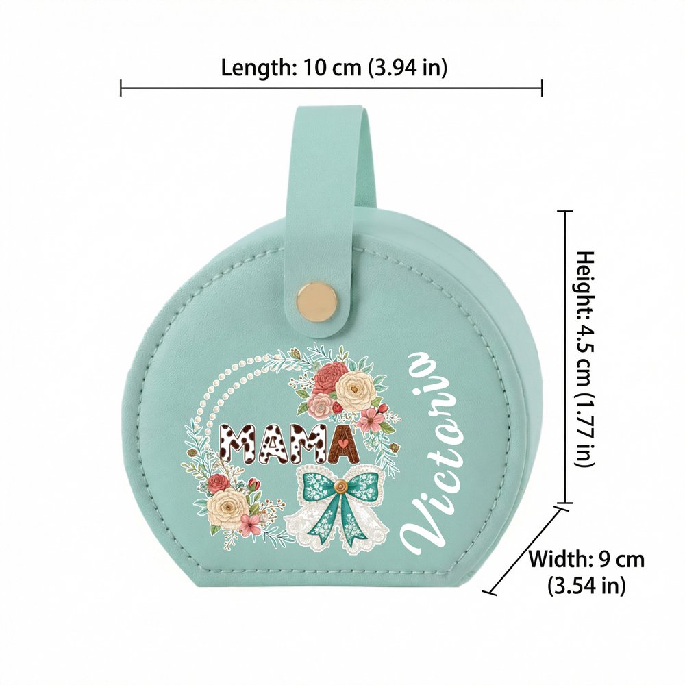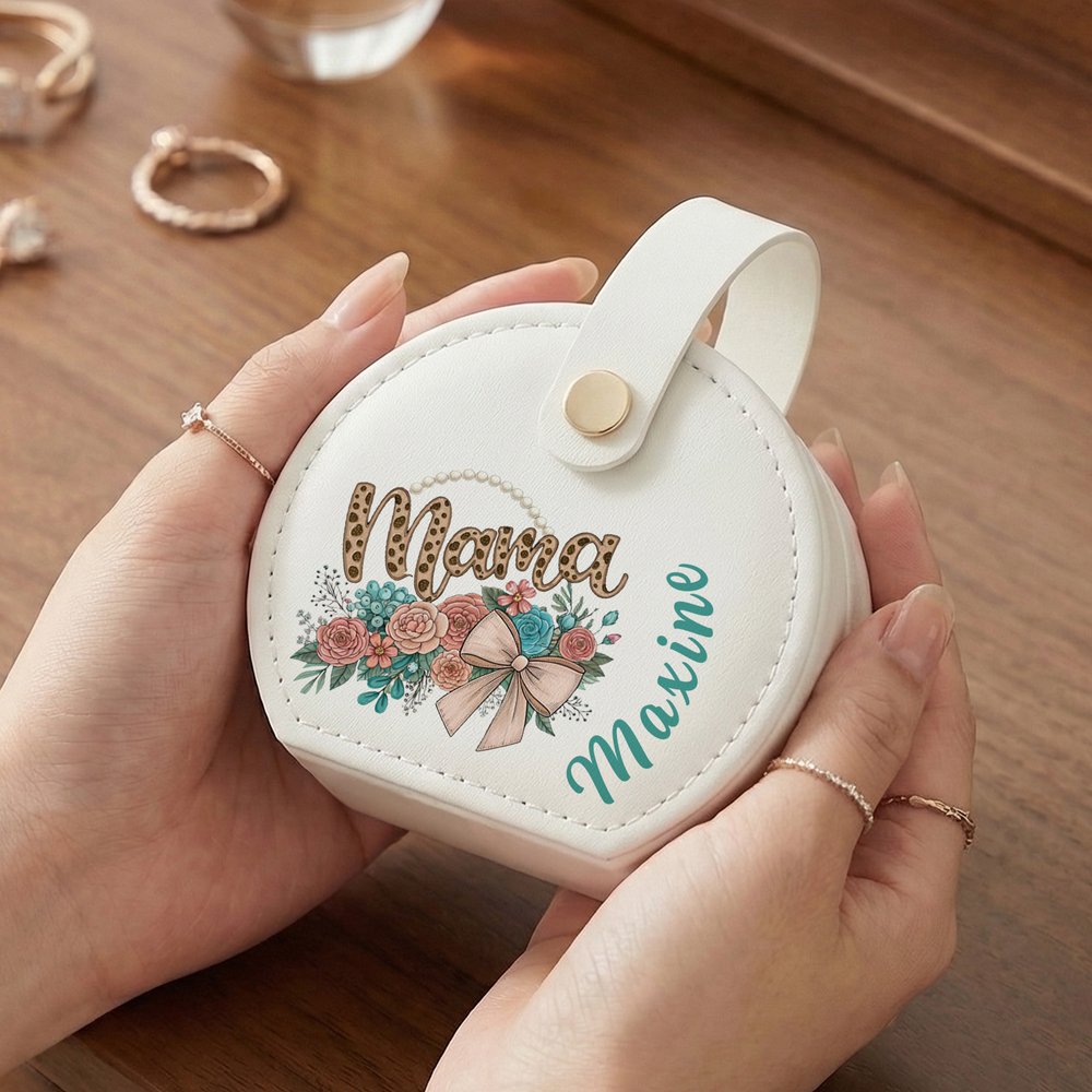 This elegant jewelry box is adorned with a delicate bow and floral design, specially engraved your name. The soft, romantic detailing makes it a loving tribute to the most important woman in your life.