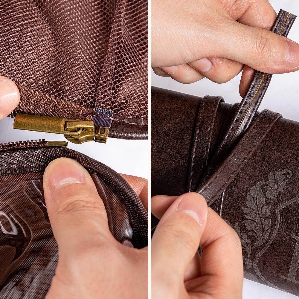 This toiletry bag has a sturdy and durable handle. It can be easily hung on the bathroom or bedroom door handle, making it convenient and space-saving. This toiletry bag can meet all your needs, from business trips to outdoor camping, from daily shaving to travel makeup.