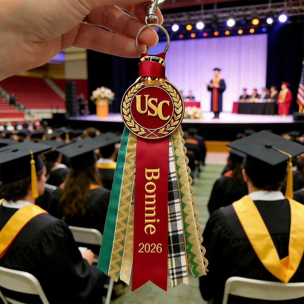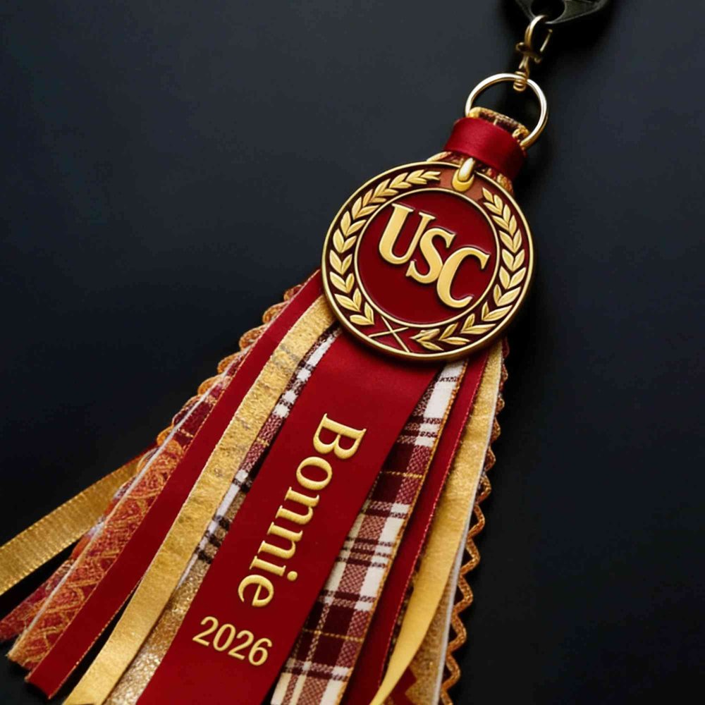 Crafted with high-quality polyester fiber, this charm is built to last! The shiny metal medallion resists scratches and maintains its brilliant shine, while the intricate ribbon details are securely attached. Equipped with a sturdy metal ring and clip, it attaches easily and firmly to backpacks, graduation caps, purses, or keychainsâensuring it stays secure throughout the day and beyond.