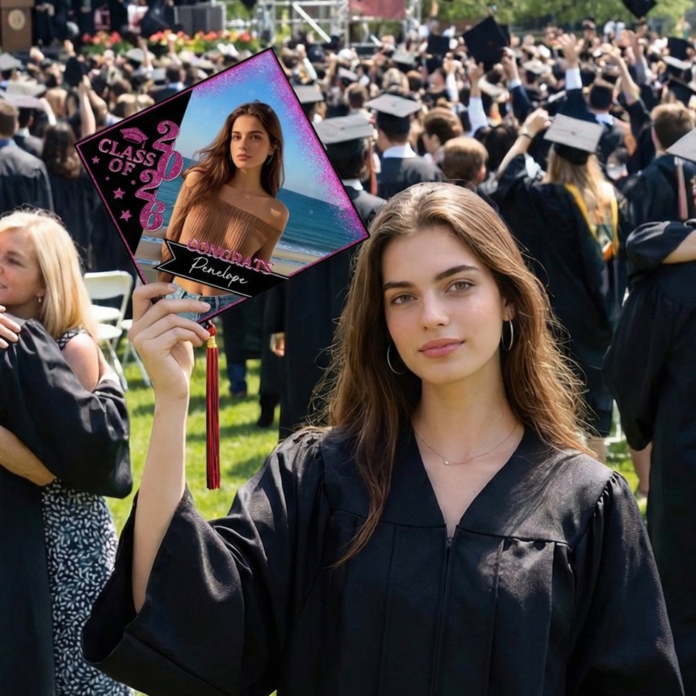 Made from premium, durable material, this topper features a smooth, rigid surface that holds vibrant prints and glitter accents beautifully. The material is lightweight and easy to attach to any graduation cap, ensuring it stays securely in place throughout the entire ceremony and photoshoot.
