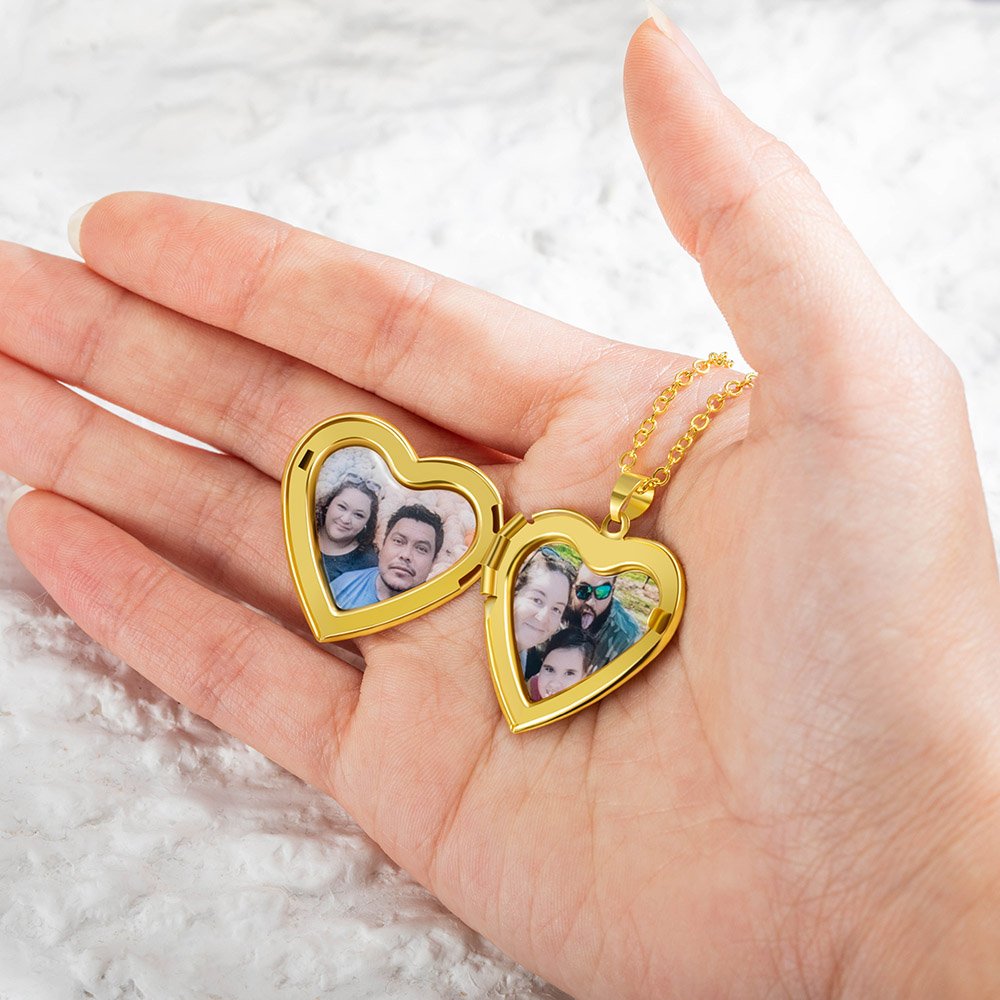 The Locket photo necklace opens to reveal a space used for storing a photograph. This heart-shaped locket necklace includes two inner photo windows, you can add up to 2 photos. Whether it's a picture of your significant other, family member, or beloved pet, this locket necklace is sure to become a treasured keepsake.