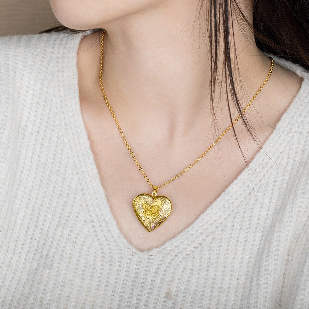 Feature: No Rust, Sturdy, Butterfly Heart Shaped, Photo Necklace