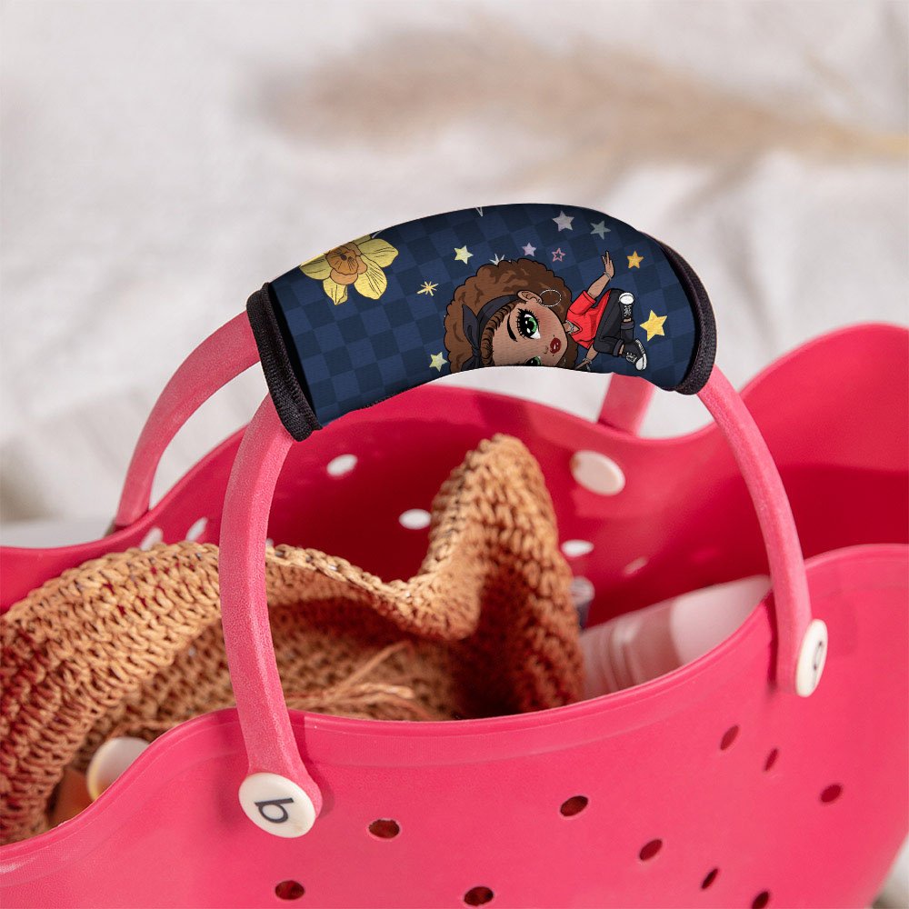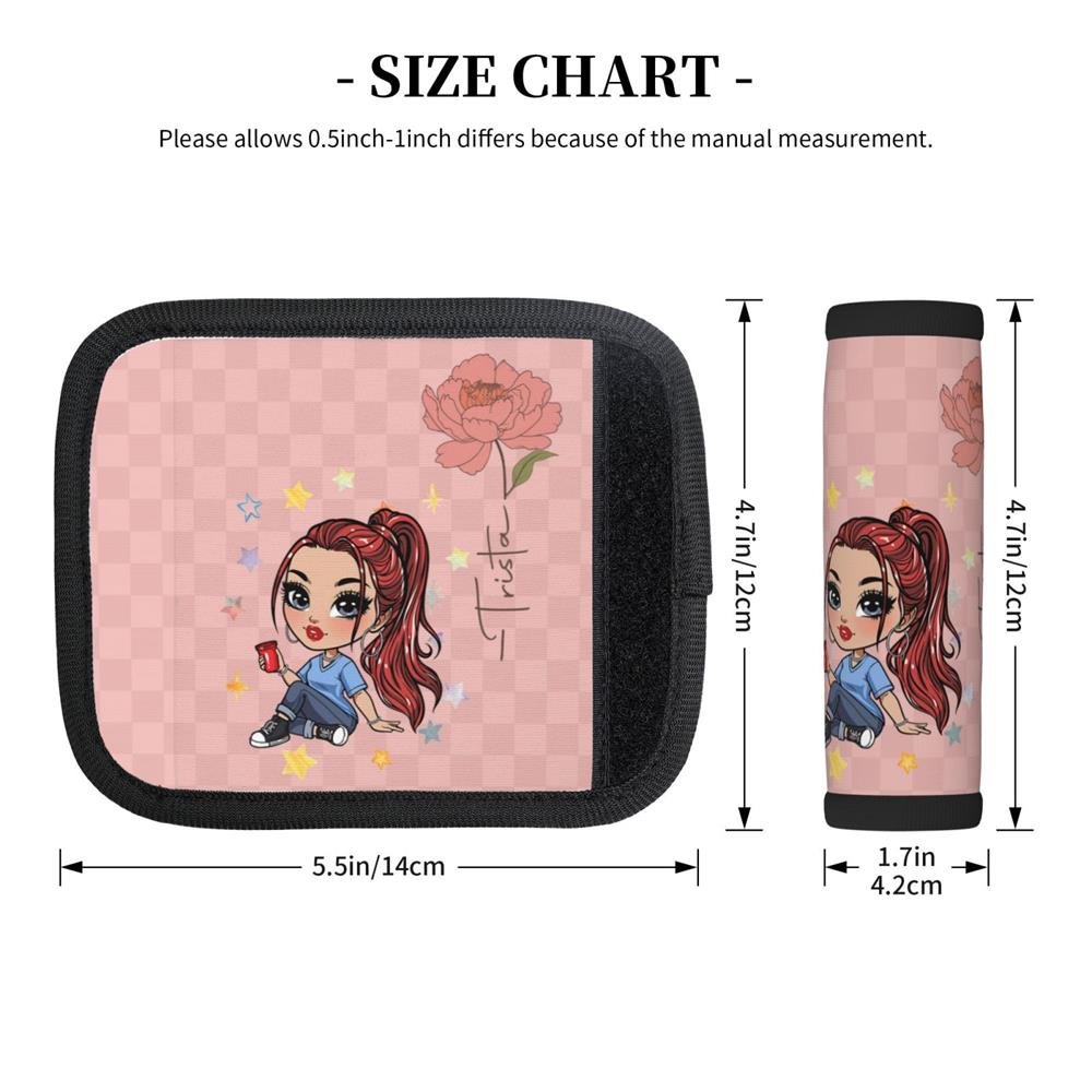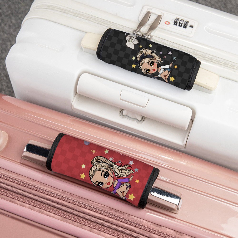 These luggage handle wraps feature trendy cartoon girl characters that can be personalized to match individual style preferences. Available in multiple background patterns and color options, each set allows for unique customization. The fashionable illustrations reflect modern style while adding a personal touch to travel gear.