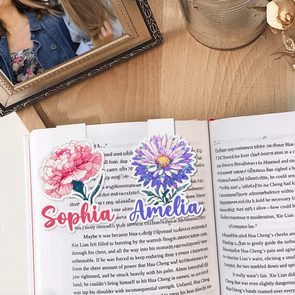 Featuring birth flowers that integrate unique monthly flower patterns and glittering design. Support name customization with designs on both sides of the magnetic paper. Whether January carnation, February violet, or other birth flowers paired with your birthday, each bookmark becomes an “exclusive reading symbol”.