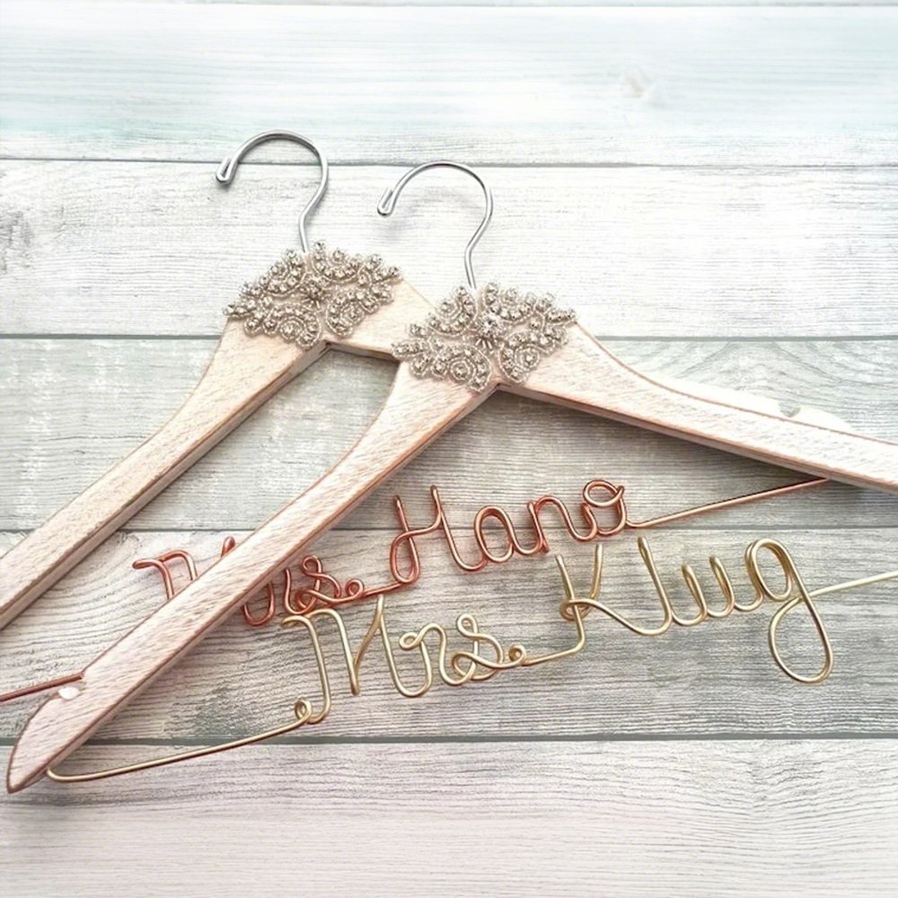 Looking for a special wedding gift? This personalized wedding dress hanger is the perfect choice for the bride, for her honeymoon, or for pre-wedding celebrations, surprising her and becoming an important part of her romantic memories.